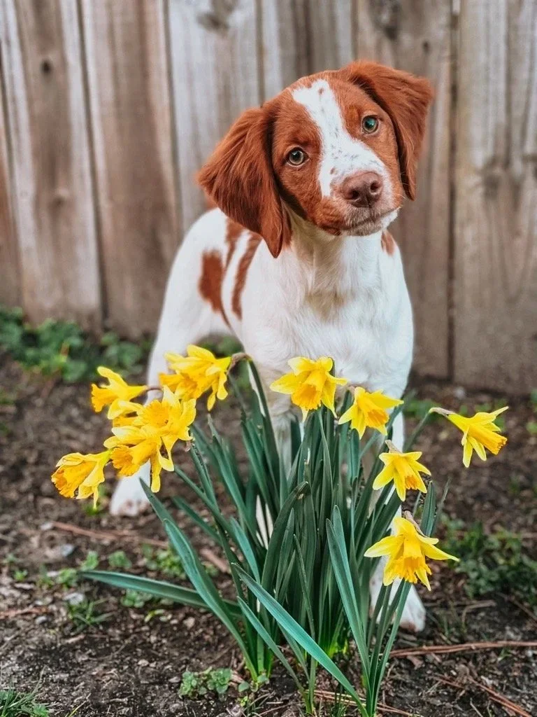 Mira is a sweet and bouncy Brittany and is the perfect mix of independent and cuddly. She has a natural retrieve, beautiful structure, and an eager-to-please temperament. We are enjoying watching her grow up and getting her started in all the fun things (birds, agility, and conformation).
